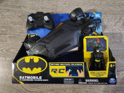 Race into action with the Batmobile RC in 1:20 scale! The remote control Batmobile features an easy-to-drive remote control, authentic Batman comic-styling and incredible armour details that bring your Batmobile to life. Comes with a 4-inch Batman action figure! Race into Gotham City. The Batman Batmobile is easy for kids to drive! The 2.4 GHz dual joystick remote control is USB rechargeable and features out-of-range sensors so you’ll know when your Batmobile needs to stay in range, recharge, and can speed into action again. Batmobile is compatible with any 4-inch DC figure. Collect Batman, Batwoman, Robin and The Joker! True Batman fans will love this Batmobile and its detailed deco and comic-style sculpting, making it a great gift idea for Batman fans. DC fans of all ages love this Batmobile collectible, toy figures and playsets to engage their imagination and create their own epic Batman missions! Protect Gotham City with the Batmobile RC vehicle! Includes: 1 Batmobile RC, 1 Batman Figure, 1 Controller, 1 Instruction Guide