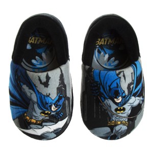 Warner Brothers Batman Boys Dual Sizes Slippers. (Toddler/Little Kids). It's the perfect footwear choice to relax or play in the house, thanks to its added footbed and a textured sole to prevent slips. Made of high-quality materials that will make them last for a long time. Features your kid's beloved superhero Batman who will make your kid want to wear these every day,