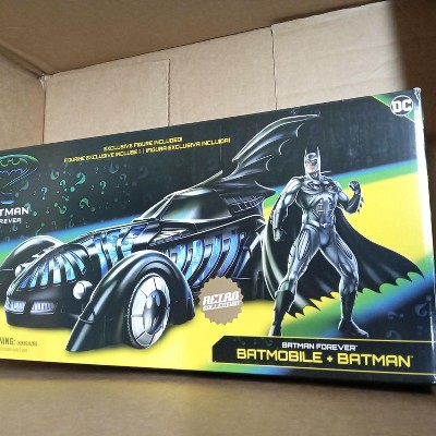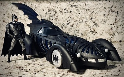 A really awesome 1/18 scale Batman Forever Batmobile that comes with a 4 inch Batman figure. I like these DC Batman sets, vehicles and figures made by Spin Master. I highly recommend them for any collector or as a birthday present for a young Batman fan. Thank you!