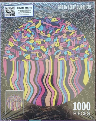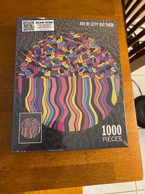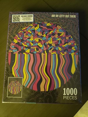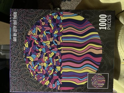 I was so excited to receive this puzzle by de.bored! I love the bright colors and fun design. The puzzle is really nice quality. The pieces are a nice thickness and lock together tightly enough so that I was able to easily move small sections without them falling apart. The puzzle also came bagged inside the box, and had very little "puzzle dust" in with the pieces. Pieces were standard size, not overly small or large. I love a harder puzzle that is not done in just hours, and this one fit the bill! I had to work on it over period of days, but the result was worth it! I plan to purchase more puzzles from this brand because of the quality. Great choice for puzzle lovers!