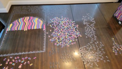 Great family activity! We’ve had all the kiddos and adults working on this a little at a time. It’s going slowly as some of the kiddos don’t quite understand the concept of puzzles but it’s been fun showing them how it works. The colors are bright and vivid which help to make it a bit easier to match pieces but with 1,000 pieces it’s still quite challenging. We don’t have a designated place to work the puzzle so we’re using a cheap puzzle mat to keep everything neat and tidy. Definitely will be looking for more of these in the future! Love that the kiddos can be entertained without internet!