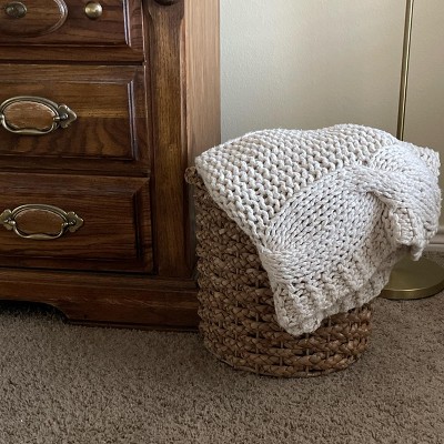 This basket is sturdy and beautiful. Nice way to store extra throw blankets.