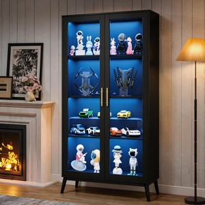 【Ample Storage Space】Our glass display cabinet features 4 shelves, providing sufficient capacity to organize curios, decors, books, toys and more. Not only can serve as a display cabinet, but also as a wine cabinet, bookcase, media cabinet, etc.