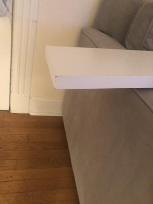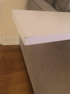 This shelf is better than imagined. Matches well with my white ikea desk- super easy to install and nice glossy finish