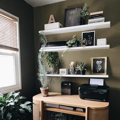 This shelf offers a blend of style and functionality, making it a great choice for various spaces like kids' rooms or living areas. Guests appreciate its easy installation and modern design, although some have noted issues with warping and insufficient mounting hardware. Overall, it serves well for lightweight items and adds a contemporary touch to any decor, making it a practical option for those seeking budget-friendly shelving solutions.