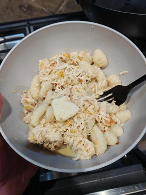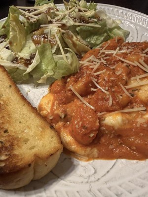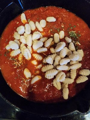 This is my first time trying gnocchi. I must say im not mad at it! The flavor is nice, cooked really well. Its soft and very filling. A nice thing to have as a staple in any cabinet. Theres so much you can do with it. I paired it with pasta sauce, chicken topped with cheese.