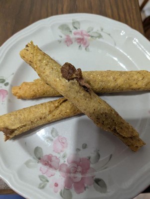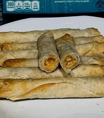 [This review was collected as part of a promotion.] If you love the crispitos from the gas station hot box, these are essentially the same thing, just a smaller version. The filling is more queso with a little chicken sprinkled around in there all wrapped in a flour tortilla. I air fried according to the directions, and left them in a couple of minutes longer because my favorite part is the crispy ends. Within minutes my kitchen was filled with a spicy queso smell that I had to double check that they weren’t busted open and spilling out the filling. Be careful to not overcook! I like to dip mine in ranch with hot sauce. I prefer another brand over these, but they are a good value for the price.