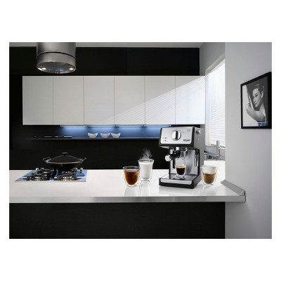 3-in-1 filter holder accommodate single shots, double shots and easy serving espresso podsThe Advanced Cappuccino System with manual frother mixes steam and milk to create a rich, creamy froth for evenly textured lattes and cappuccinos - just the way you like themAlways brew espresso or cappuccino at the perfect temperature with two separate thermostatsDurable, high-quality stainless steel boilerExtract the most authentic flavor with the 15 bar brewing systemEasy to clean with removable water tank (37-ounce) with indicator light and removable drip tray