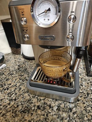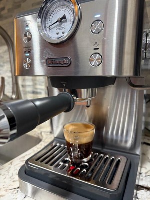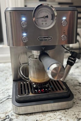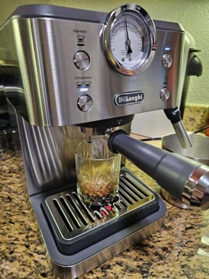 Dear BlytheH, Thank you for sharing your detailed experience with your De’Longhi Classic Espresso Machine (EM450M). We're glad to hear that you find it beginner‑friendly, easy to clean, and capable of pulling a nice espresso shot. We also appreciate your feedback regarding the plastic housing, the need for a separate grinder, and the learning curve with the milk frother. We’d be happy to guide you through optimizing your espresso results—such as adjusting grind size, dose, and tamp pressure—to help you get the most customization possible with this model. We can also provide tips for smoother frothing and maximizing clearance when using larger mugs. To address any concerns or questions, please feel free to chat with a Live Expert at: https://www.delonghi.com/en-us/delonghi-support and click Chat at the bottom right. We’ll be happy to assist you further. Kind regards, De'Longhi Group Customer Care
