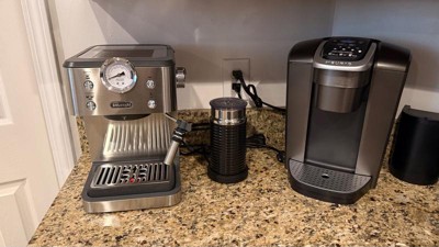 [This review was collected as part of a promotion.] I love my espresso machine. It’s compact, quick and easy to use. I had a De’Longhi expression machine before and it’s such a great brand. Oh yeah! So easy to use the frother. All in all a must have.
