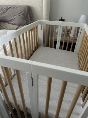 A: Thank you for your question. The Delta Children Mia Portable Folding Mini Crib includes a 1.5-inch-thick mini crib mattress designed to use sheets sized 24" × 38". For a snug and secure fit, opt for fitted mini crib sheets with elasticized edges that match those dimensions. If you require more assistance, please visit https://www.deltachildren.com/pages/contact-us-delta#tab-inquiries to contact us including "REVIEW" in the subject line so that we can prioritize your request.