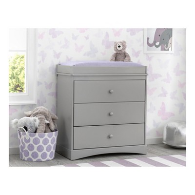The Skylar 3 Drawer Dresser from Delta Children takes kids from tot to teen-keeping all their essentials organized in the process. Easily transitioning from changing station to dresser, it features a removable changing topper, three spacious drawers with safety stops and a simple silhouette, ensuring it will never go out of style. Available in Gray, Ebony, Dark Chocolate and Bianca White. Coordinates with other items in the Skylar Collection from Delta Children.