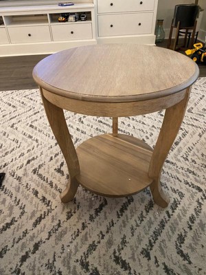 [This review was collected as part of a promotion.] I received the round Accent Table the color is natural.It is absolutely gorgeous and easy to assemble! The pre-made drill holes made it take about 5 minutes to put together. The table was well packaged and arrived without damage. The table was exactly as pictured and I love it. It is a great table. It's stylish, sturdy and functional.