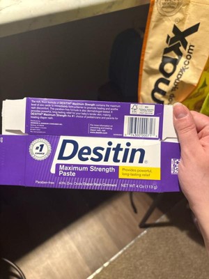 The #1 choice of pediatricians and parents, Desitin Maximum Strength Diaper Rash Paste works to effectively treat and help prevent diaper rash discomfort. Made with 40% maximum-level zinc oxide, this rich, thick diaper rash cream soothes and relieves on contact by sealing out wetness and protecting chafed skin due to diaper rash. Dermatologist- and pediatrician-tested, it is clinically shown to protect baby's delicate skin for 12 hours. The hypoallergenic formula of this diaper rash treatment is gentle enough for daily use and is free of parabens, phthalates, dyes, and soap. Desitin Maximum Strength Diaper Rash Paste provides 5-in-1 action to treat, heal, protect, soothe and prevent diaper rash, for healing you can see and relief your baby can feel.