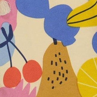 Deux par Deux Girl Printed French Terry Short Fruits on Yellow Background