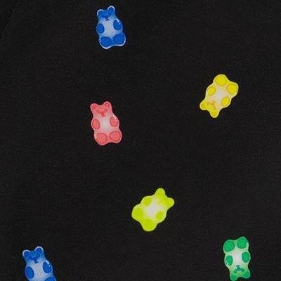 It doesn't get any sweeter than our Printed Short Black and Multicolored Gummies! Featuring an allover multicolor gummy bear print, these comfy soft and lightweight shorts are made from lightweight cotton jersey and feature a pull-on fit with a stretch elastic waistband, slant front pockets, and multi color rainbow stitching.