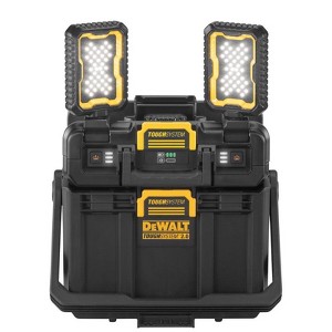 Introducing the DeWalt ToughSystem2.0 Work Light & Storage Box. It features seven (7) work modes with up to 4,000 lumens. The work light has two adjustable LED panels with 360 deg. maneuverability. The compact storage box includes a tote handle. It is optimal for quick access storage of batteries, tools, and other job site essentials.