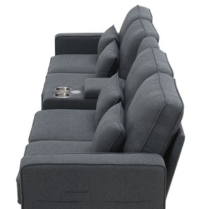 This is a modern and stylish multifunctional sofa,the linen fabric is breathable and wear-resistant.Large seat depth can let you in the most relaxed way possible.For convenience, it has a lot of storage space.In the middle of this sofa,there is a console for storage.on the side,it also has 3 storage pockets of different sizes.The most surprising point is that it can be wired or wirelessly charged.It is very friendly to people who use electronic devices a lot.