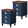 Color: The cabinet body is made of dark blue, giving a sense of stability and classicism. The wooden panel on the top presents a natural wood color, contrasting with the dark blue, adding a rustic and simple feeling of the rural style.Material: The cabinet body is mainly made of wood, and the interior of the drawers is also made of wood, demonstrating the characteristics of nature and environmental friendliness.