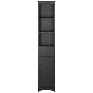 - Added Storage: There never seems to be enough storage in the bathroom for everything you need. This tall bathroom cabinet has a 3-tier shelf and enclosed cabinetry, so you can store towels, daily hygiene products and cleaning supplies without trying to fit everything under the sink.