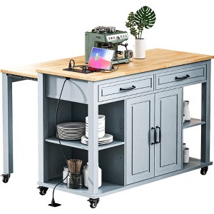 - [Upgraded Built-in Outlet]This exquisitely crafted kitchen island boasts a sophisticated built-in charging station, complete with 2 AC outlets, 1 USB port, and 1 Type-C port to accommodate all of your kitchen appliance power needs. You can conveniently charge your coffee maker, juicer, and any devices that use Type-C ports of this kitchen storage island. Whether you're using it as an additional workspace,or a casual dining spot, the island's versatile design caters to various kitchen activities.