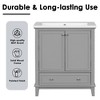- Assembly Required: This bathroom vanity needs assembly. All the hardware(screws, metal door hinges and handles, drawer slides, anti-toppling device etc.) and instruction manual are provided. You can install it according to the instruction easily.