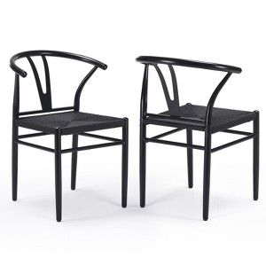 Dexmalle Set of 2 Mid Century Ergonomic Chairs with Rope Weave Seat,Balck