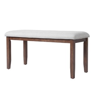 CLASSIC STYLE: With a beige linen upholstered seat and simple four-legged support, this mid-century modern bench pairs perfectly with any home style.