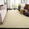 Embracing a classic color palette of lush green and sophisticated ivory, this rug introduces a refreshing vibrancy while maintaining serene versatility. The symmetrical geometric pattern draws inspiration from both contemporary design and traditional motifs, offering a harmonious aesthetic that complements a wide range of interiors.