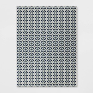 A: The rug features a woven pattern of diamond tiles, adding an artisanal touch.