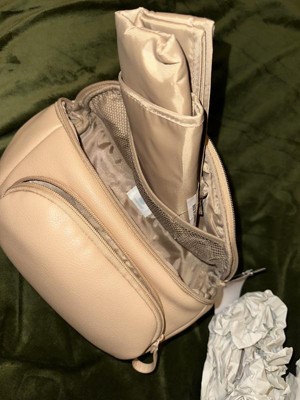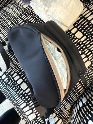 As a mom of three who has carried diaper bags for seven years now, I was thrilled with this option! It holds the perfect amount of baby gear and personal items for mama. It has a changing pad included and easily fits diapers, wipes and a change of clothes. Now I have my hands free and look stylish!