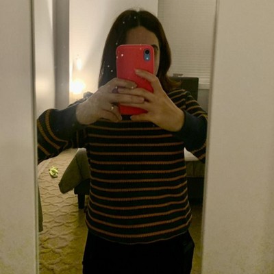 I often have to size up to a medium in long sleeve shirts because the sleeves are too short (I have long arms). This sweater fit perfect in my preferred size without sizing up. Blue and yellow stripes are cute. Big fan.