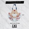 The apron measures 26 inches by 29.5 inches, with extra-long adjustable strap to wrap around neck and waist.