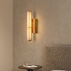 Crafted from premium natural alabaster, this modern wall sconce delivers soft, diffused lighting through its beautifully veined stone. Paired with a sturdy metal frame, it blends minimalist elegance with long-lasting durability. Ideal for bathrooms, bedrooms, hallways, and living spaces, it creates a warm.