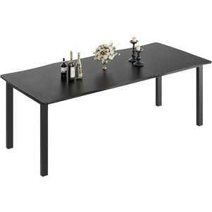 Dining Table Rectangular Table with Unique Wave Irregular Edge,Sturdy Metal Frame,Waterproof and Scratch-Resistant Surface 1.8m black