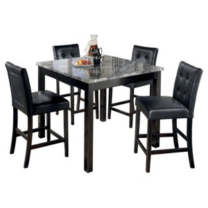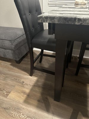 Dining Table Set Black for 4: Contemporary Square Faux Marble Top, Upholstered Vinyl Seats, Counter Height, 5-Piece Set
