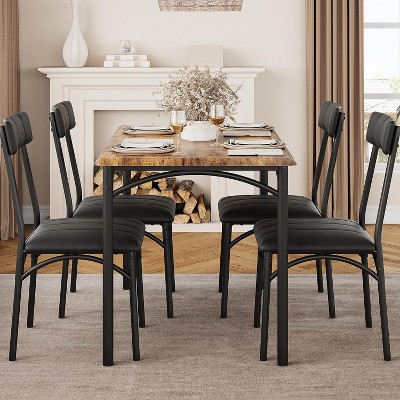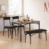 Upgrade your dining space with this cozy 4-piece dining table set, featuring a cushioned bench and two upholstered chairs. Crafted from a premium MDF tabletop and a sturdy steel frame, this set combines rustic charm with long-lasting durability. The thick seat and backrest cushions keep you comfortable through every meal, while the space-saving design lets you tuck the chairs and bench neatly under the table when not in use. Perfect for apartments, studios, kitchens, and small dining areas