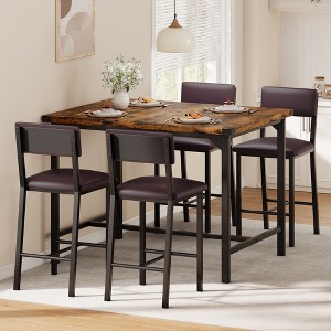 Metal Corner Guards: This 4-person dining set includes a bar-height table and 4 upholstered bar stools, perfect for sharing a meal or a drink with loved ones. Sturdy metal corner guards protect against everyday bumps, ensuring the table's durability and appearance remain intact. The modern design and beautiful wood grain finish add a touch of industrial chic that complements any home.