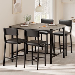 Metal Corner Guards: This 4-person dining set includes a bar-height table and 4 upholstered bar stools, perfect for sharing a meal or a drink with loved ones. Sturdy metal corner guards protect against everyday bumps, ensuring the table's durability and appearance remain intact. The modern design and beautiful wood grain finish add a touch of industrial chic that complements any home.