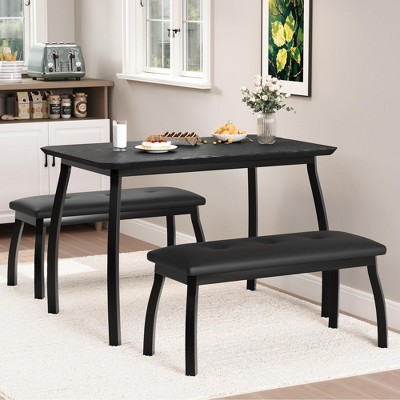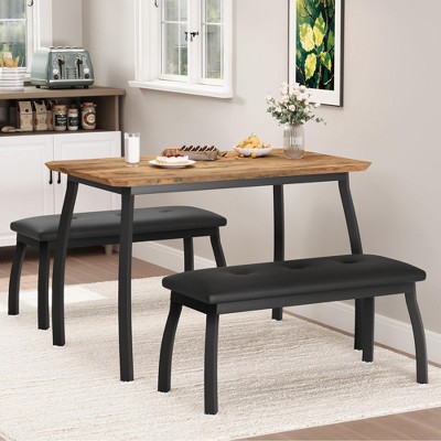 This charming farmhouse-style dining set features PU-upholstered benches and a space-saving 43.31"L table (with under-table bench storage), combining durable metal/wood construction, ergonomic comfort, and easy stain-resistant maintenance for cozy, compact living.