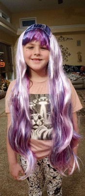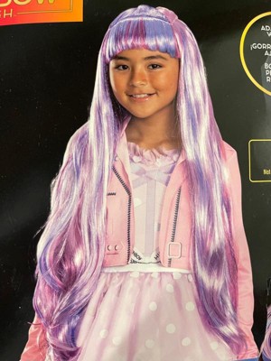 Join the creative and colorful Rainbow High girls! Our Kids Violet Willow® Wig has lots of purple with strands of light blue in a long style with bangs. 100% Olefin. One size fits most. © MGA Entertainment, Inc. All Rights Reserved.