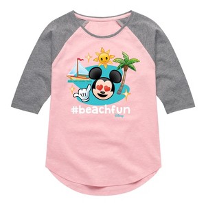 Disney Emoji - Beach Fun - Toddler And Youth Girls Raglan Graphic T-Shirt - Add a touch of magic to your wardrobe with this graphic apparel featuring iconic Disney designs. Showcasing beloved characters and classic imagery, each piece combines nostalgic charm with modern style—perfect for Disney fans of all ages. Whether you're headed to the parks or just adding whimsy to your everyday look, these graphics bring the magic to life.
