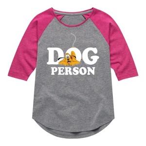 Mickey & Friends - Dog Person - Toddler And Youth Girls Raglan Graphic T-Shirt - Add a touch of magic to your wardrobe with this graphic apparel featuring iconic Disney designs. Showcasing beloved characters and classic imagery, each piece combines nostalgic charm with modern style—perfect for Disney fans of all ages. Whether you're headed to the parks or just adding whimsy to your everyday look, these graphics bring the magic to life.