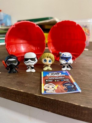 [This review was collected as part of a promotion.] These little guys are adorable. Love their bright sparkly eyes. Mini surprise toys are just so much fun. Love that the ball they came in is the death star, so it adds to the play time experience. A very nice gift for the young Star wars fan in your life!