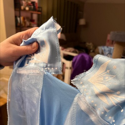 My daughter loves her new Elsa outfit. I however, do not. Before even washing it for the first time, parts of the thread have come loose and the white glittery area by the shoulders is coming apart. We’ve literally had it 3 weeks. And this isn’t our first princess dress, yet it’s the only one that is falling apart this quickly for sure.