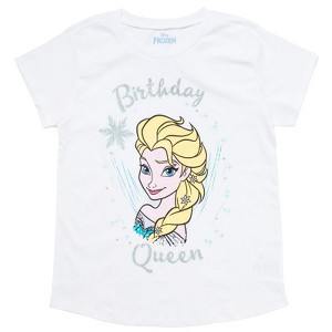 Happy Birthday Princess! Celebrate your little girl's special day with her favorite Disney characters in this stylish Disney birthday shirt! This cute short sleeve tee features fun Happy Birthday messages and colorful artwork your Disney fan will love to wear! Choose from vibrant designs of iconic characters like Minnie Mouse and her cat Figaro, Stitch and Angel from Lilo and Stitch, Woody, Buzz Lightyear, Jessie, Bo Peep and the rest of their friends from Toy Story, Disney Doorables, and Disney princesses Belle from Beauty and the Beast, Ariel from The Little Mermaid, Rapunzel from Tangled, Elsa and Anna from Frozen, Tiana from The Princess and the Frog, and Cinderella! Dressed in this soft and comfy Disney tshirt, your little girl is ready for an exciting birthday adventure!