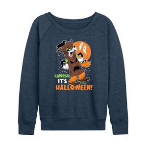 Women's - Disney - Gawrsh It's Halloween Lightweight French Terry Wide Neck Long Sleeve Graphic Shirt - 1 of 4