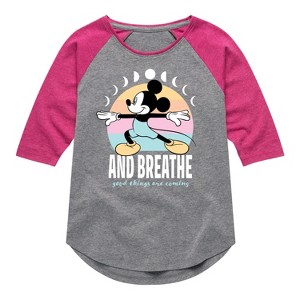 Mickey & Friends - Mickey And Breathe - Toddler And Youth Girls Raglan Graphic T-Shirt - Add a touch of magic to your wardrobe with this graphic apparel featuring iconic Disney designs. Showcasing beloved characters and classic imagery, each piece combines nostalgic charm with modern style—perfect for Disney fans of all ages. Whether you're headed to the parks or just adding whimsy to your everyday look, these graphics bring the magic to life.