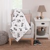- This soft baby blanket comes in shades of black and white with touches of taupe, and white Cuddly Plush back