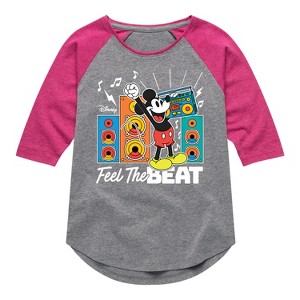Disney - Mickey Feel The Beat - Toddler & Youth Girls Raglan Graphic T-Shirt - Add a touch of magic to your wardrobe with this graphic apparel featuring iconic Disney designs. Showcasing beloved characters and classic imagery, each piece combines nostalgic charm with modern style—perfect for Disney fans of all ages. Whether you're headed to the parks or just adding whimsy to your everyday look, these graphics bring the magic to life.